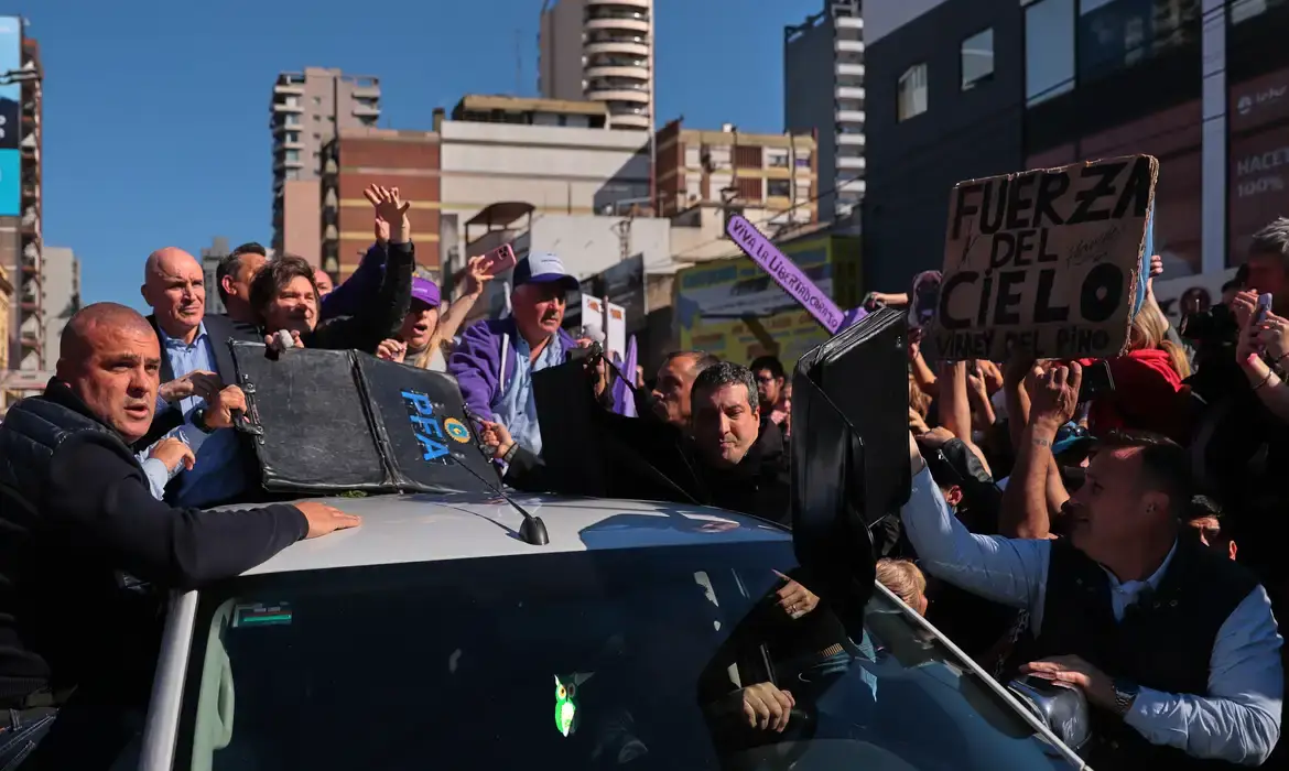 Milei deixa ato de campanha após protesto e agressões em Buenos Aires